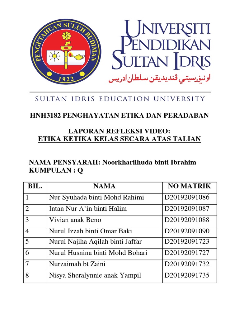 Hnh3182 Laporan Refleksi Video Etika Kumpulan 3 Pdf Pdf